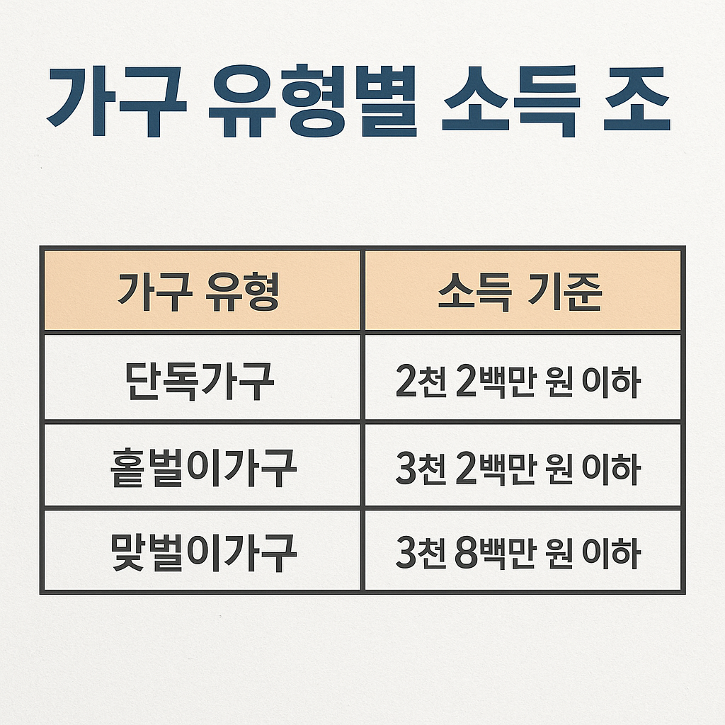 1. 소득 조건 (가구 유형별 총소득 기준)