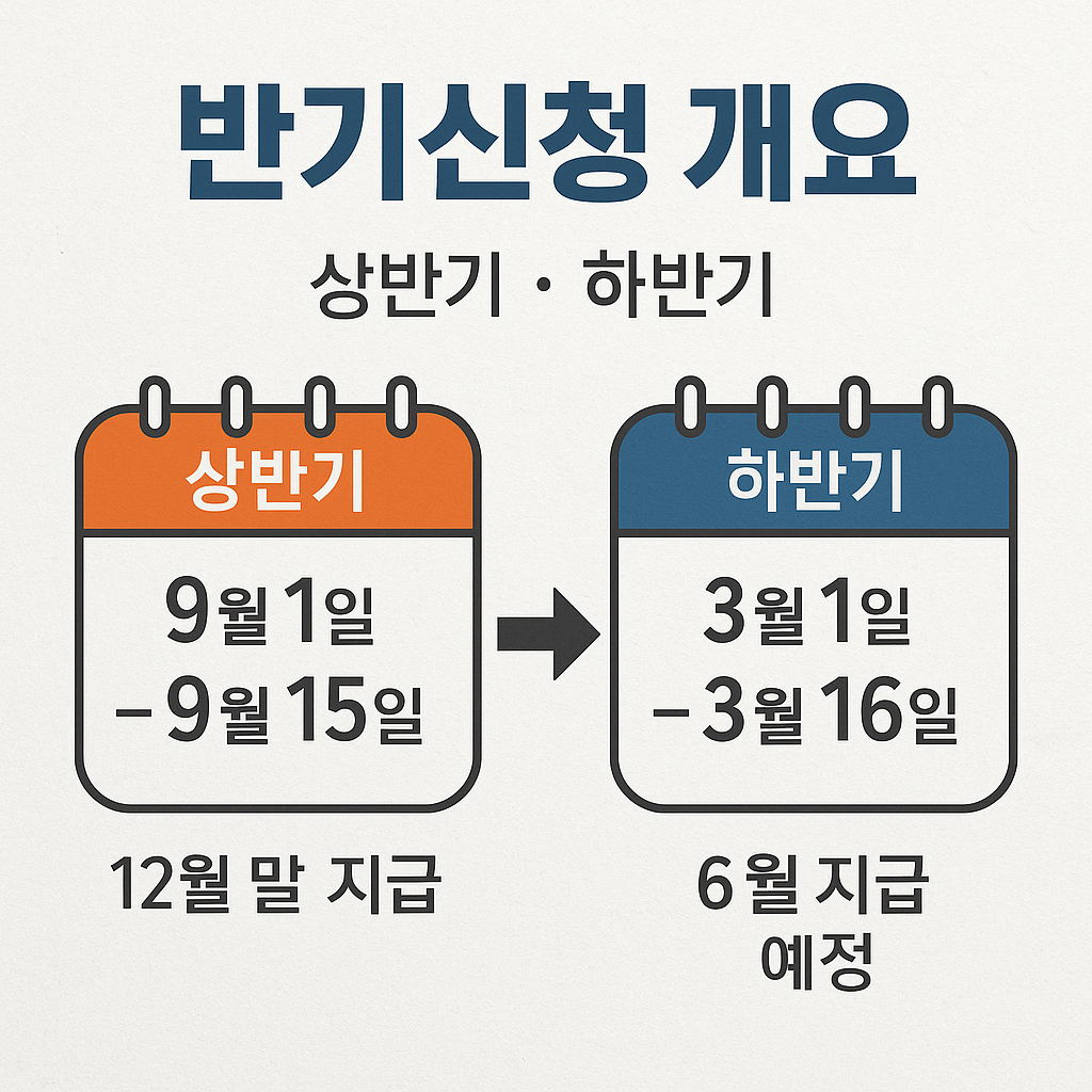 ※ 반기신청을 하면 같은 해 정기신청은 할 수 없습니다. 대신 내년 6월에 정산을 통해 추가 지급 또는 환수가 결정됩니다.